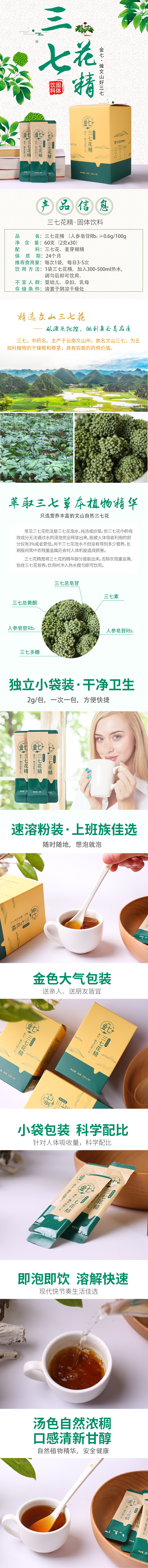 飲 用 方法:1袋三七花精,加入300-500ml熱水調(diào)勻后即可飲用