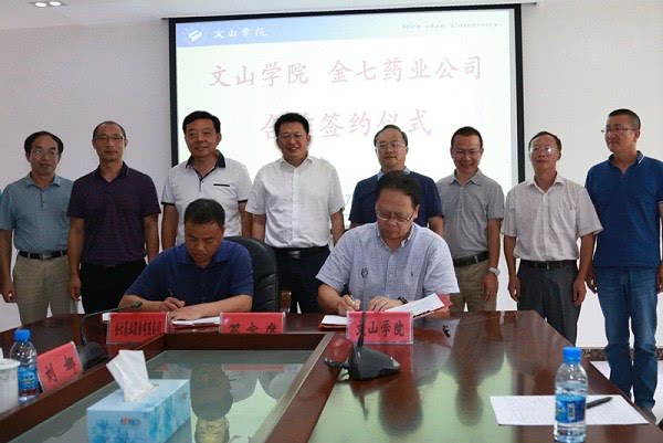 為了三七產業(yè)鏈持續(xù)健康發(fā)展,促進當地經濟發(fā)展,響應國家精準扶貧及《國務院辦公廳關于深化產教融合的若干意見》,深化產教融合,促進教育鏈、人才鏈與產業(yè)鏈、創(chuàng)新鏈有機銜接,提高教育質量、擴大就業(yè)創(chuàng)業(yè)、推進經濟轉型升級、培育經濟發(fā)展新動能,全面提升人力資源質量。在云南省文山州政府的推動下,7月17日下午,文山學院三七研究院和金七藥業(yè)股份有限公司就深化務實合作、加強校企交流實踐等達成了一系列重要共識,雙方在文山學院簽訂了校企戰(zhàn)略合作協議。