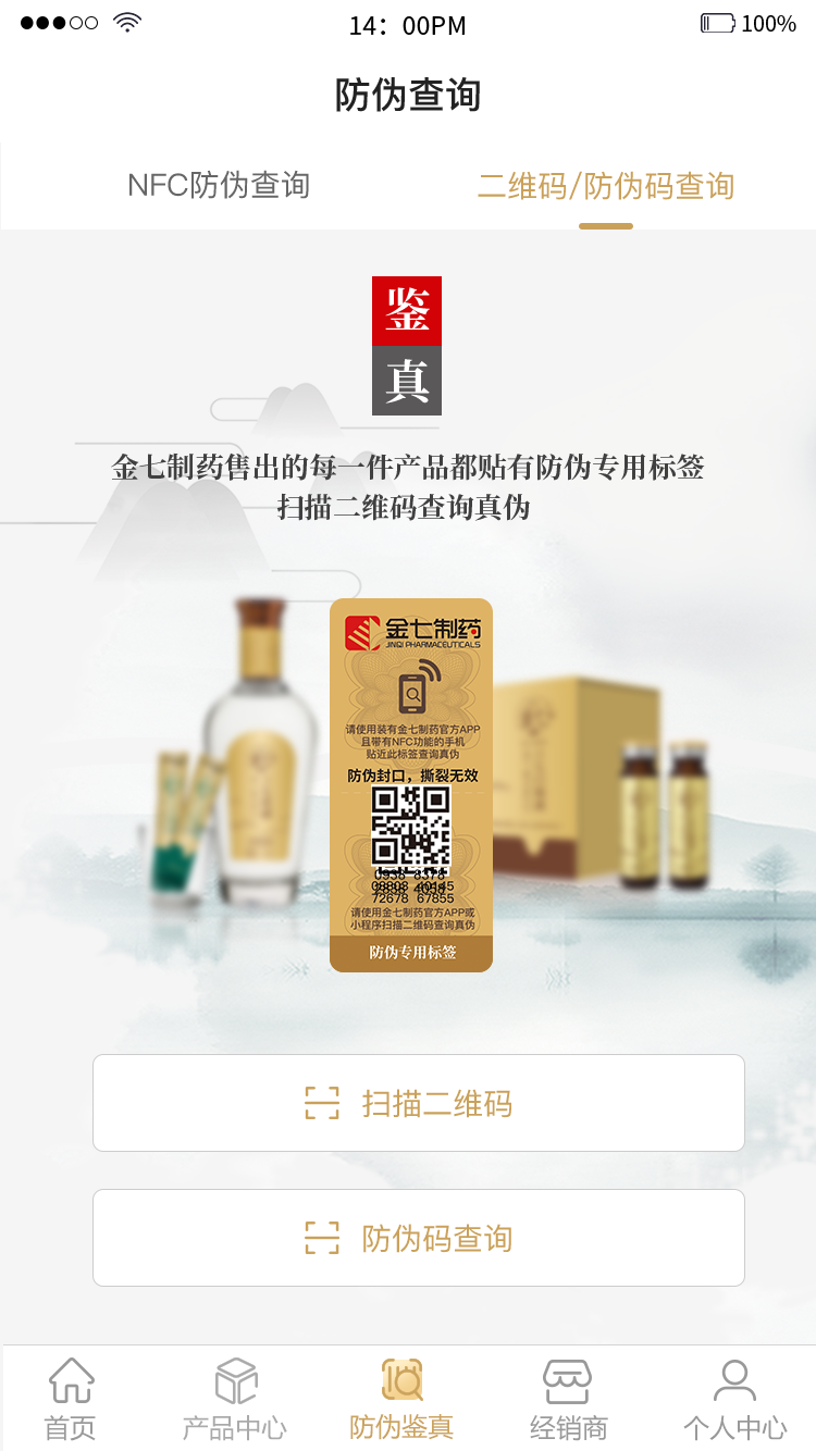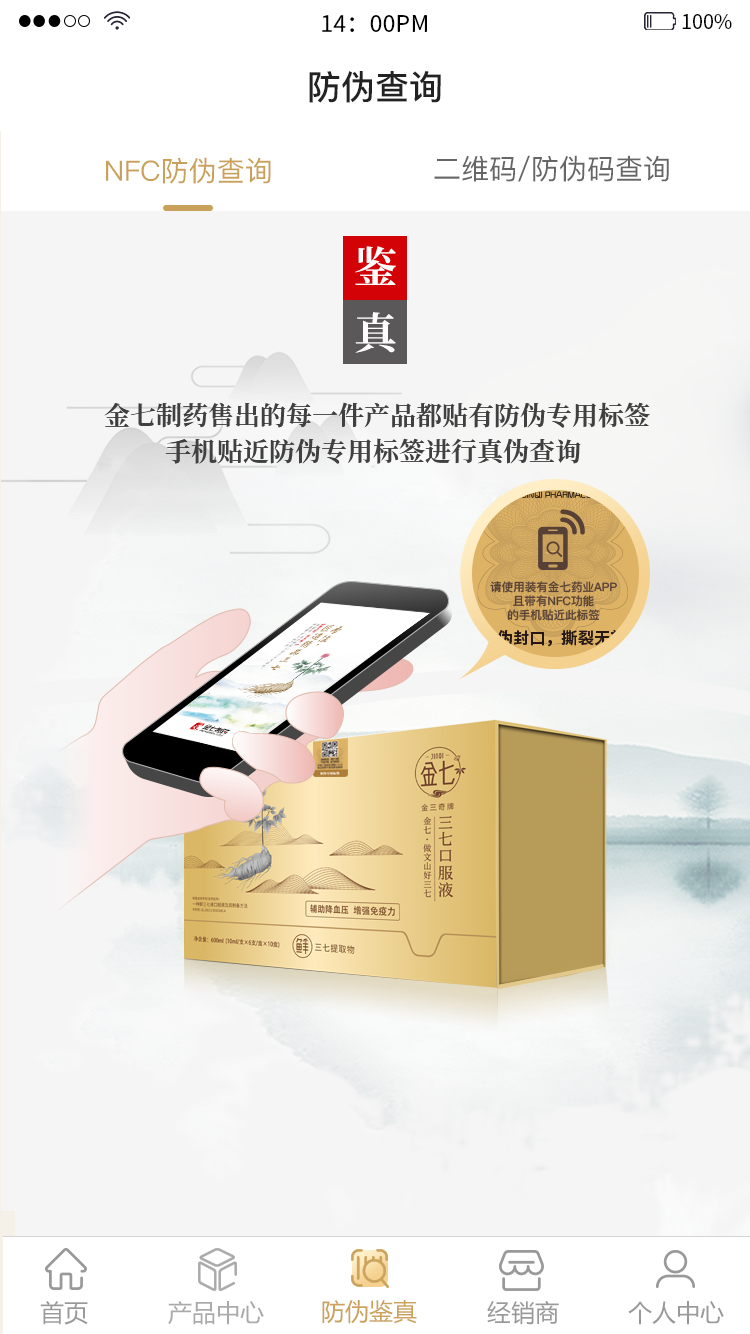 金七藥業(yè)售出的產(chǎn)品都貼有防偽專用標(biāo)簽,請使用裝有金七藥業(yè)官方APP且?guī)в蠳FC功能的手機(jī)貼近防偽專用標(biāo)簽進(jìn)行真?zhèn)尾樵儭?注:蘋果手機(jī)暫不支持NFC功能)